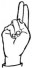 На ћирилици написано КРИСТИНА КОЈОВИЋ састоји се из 15 слова [?]. Исписано ћириличном једноручном азбуком за глувонеме: